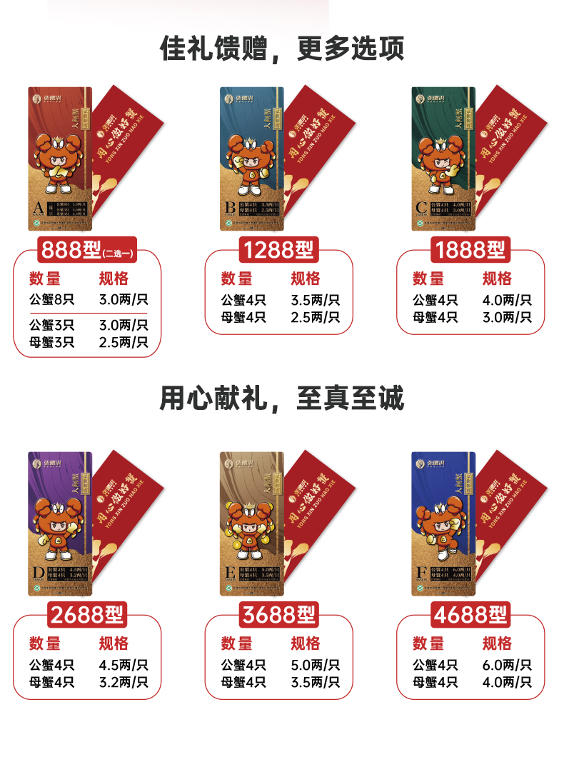 公蟹6.5两4只 / 母蟹4.5两4只